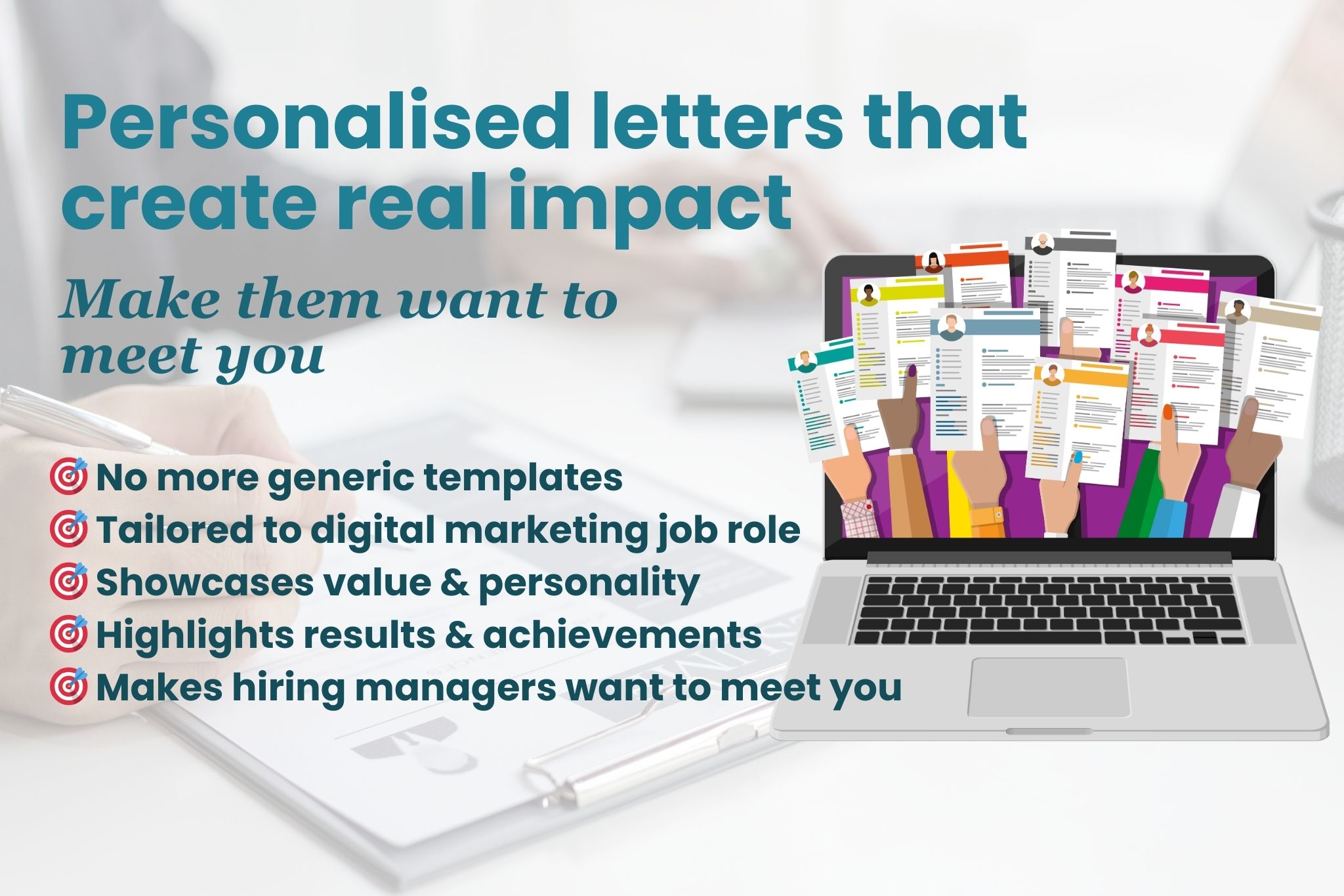 Let’s ditch the generic fluff. Our cover letters are custom-crafted to match the job and showcase your value, personality, and drive — in a way that makes hiring managers want to meet you.
